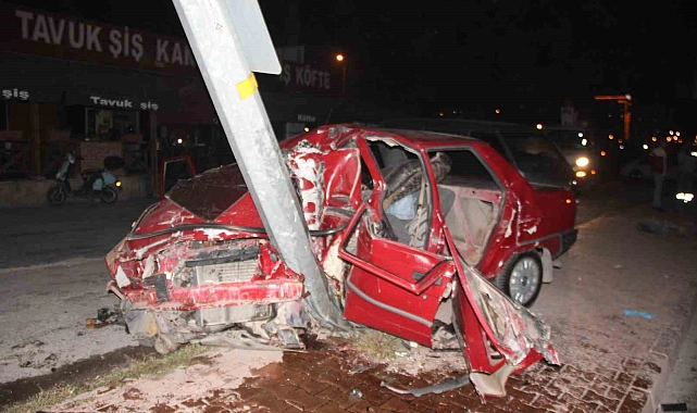 Aydınlatma direğine çarpan otomobil hurdaya döndü