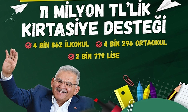 Kayseri Büyükşehir Belediye Başkanı Dr. Memduh Büyükkılıç'ın, ihtiyaç sahibi ilkokul, ortaokul ve lise öğrencilerine kırtasiye yardımları için verdiği talimat sonrası, Büyükşehir Belediyesi, 2024-2025 eğitim öğretim yılı için 11 bin 937 öğrenciye 11 milyon 416 bin 250 TL kırtasiye yardımı yaptı.