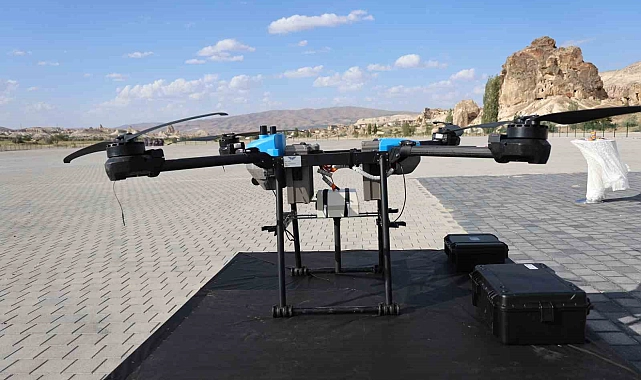 Bin metre yükseklikten 50 metre derinliği tarayabilen dronun test uçuşu başarı ile gerçekleşti