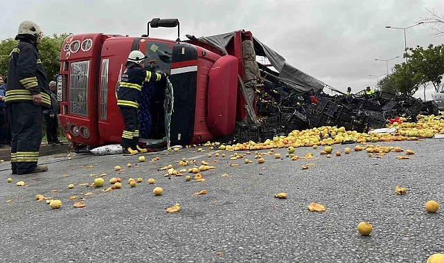 Eskişehir'de sürücüsünün direksiyon hakimiyetini kaybettiği meyve yüklü kamyon yan yattı. Yere saçılan meyveleri vatandaşların topladığı olayda, sürücü sıkıştığı yerden uzun uğraşlar sonucu çıkarıldı. Olay, Tepebaşı ilçesi Fevziçakmak Mahallesi üzerinde meydana geldi. Ramazan Sağlam idarisindeki 32 KH 099 plakalı meyve yüklü kamyon henüz bilinmeyen bir nedenle sürücüsünün direksiyon hakimiyetini kaybetmesi sonucu yol kenarındaki kaldırıma çıktıktan sonra yan yattı. Devrilen kamyonun kasasında bulunan ve yere yayılan meyveler civardaki vatandaşlarca yoldan toplanarak trafik açılmaya çalışıldı. Kaza mahalline ihbar üzerine çok sayıda sağlık, polis ve itfaiye ekibi sevk edildi. Yan yatan kamyonun içinde sıkışan sürücü Ramazan Sağlam, itfaiye ekiplerinin çalışması sonucunda çıkarıldı. Bilincinin açık olduğu görülen sürücü Eskişehir Şehir Hastanesi'ne sevk edildi. Kazadan dolayı metrelerce uzunluğunda araç kuyruğu oluşurken, polis ekipleri aksayan trafiği kontrol olarak açtı. Öte yandan çevredeki vatandaşlar ve itfaiye ekipleri olası yangın riskine karşı kamyonun elektrik akışını kesmeye çalıştı. Polis ekiplerince olayla ilgili inceleme başlatıldı.