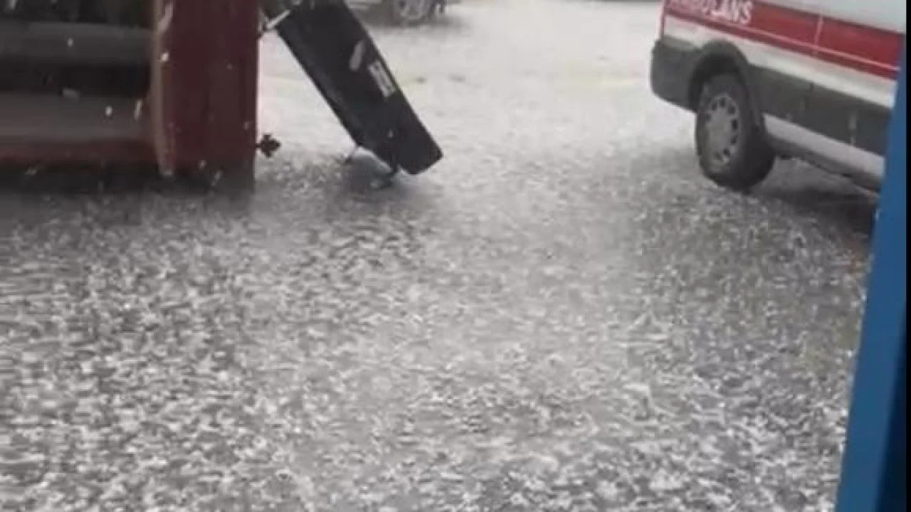 Eskişehir’de aniden bastıran dolu yağışı sokakları beyaza bürüdü, o anlar cep telefonu kamerasına yansıdı.
