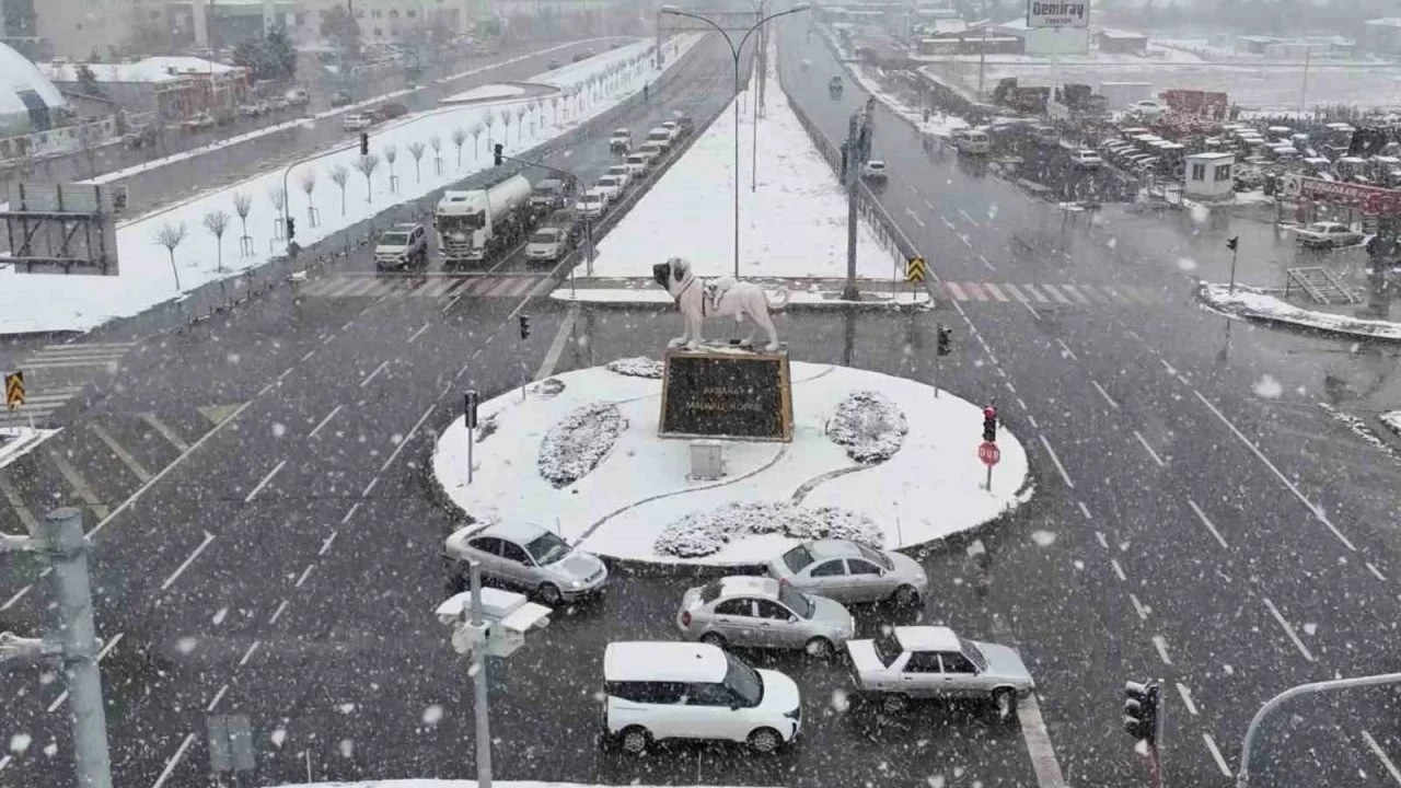 Aksaray’da akşam saatlerinde başlayan kar yağışı şehri beyaza bürüdü.