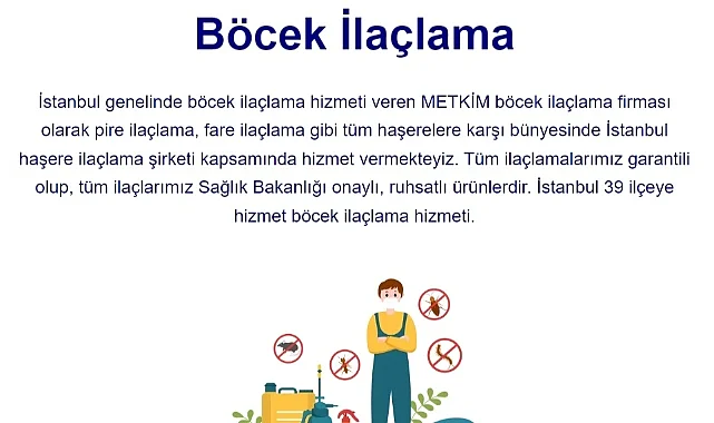 İstanbul böcek ilaçlama şirketi olarak, Metkim Böcek İlaçlama, müşterilerine kaliteli ve etkili hizmet sunmaktan gurur duyar. Siz de haşere sorunlarıyla başa çıkmak ve sağlıklı bir yaşam alanına sahip olmak istiyorsanız, bize ulaşın. Metkim Böcek İlaçlama, İstanbul'un daima yanınızda!