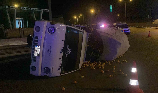Karaman'da Narenciye Yüklü Kamyonet Kavşakta Devrildi: Sürücü Ölümden Döndü