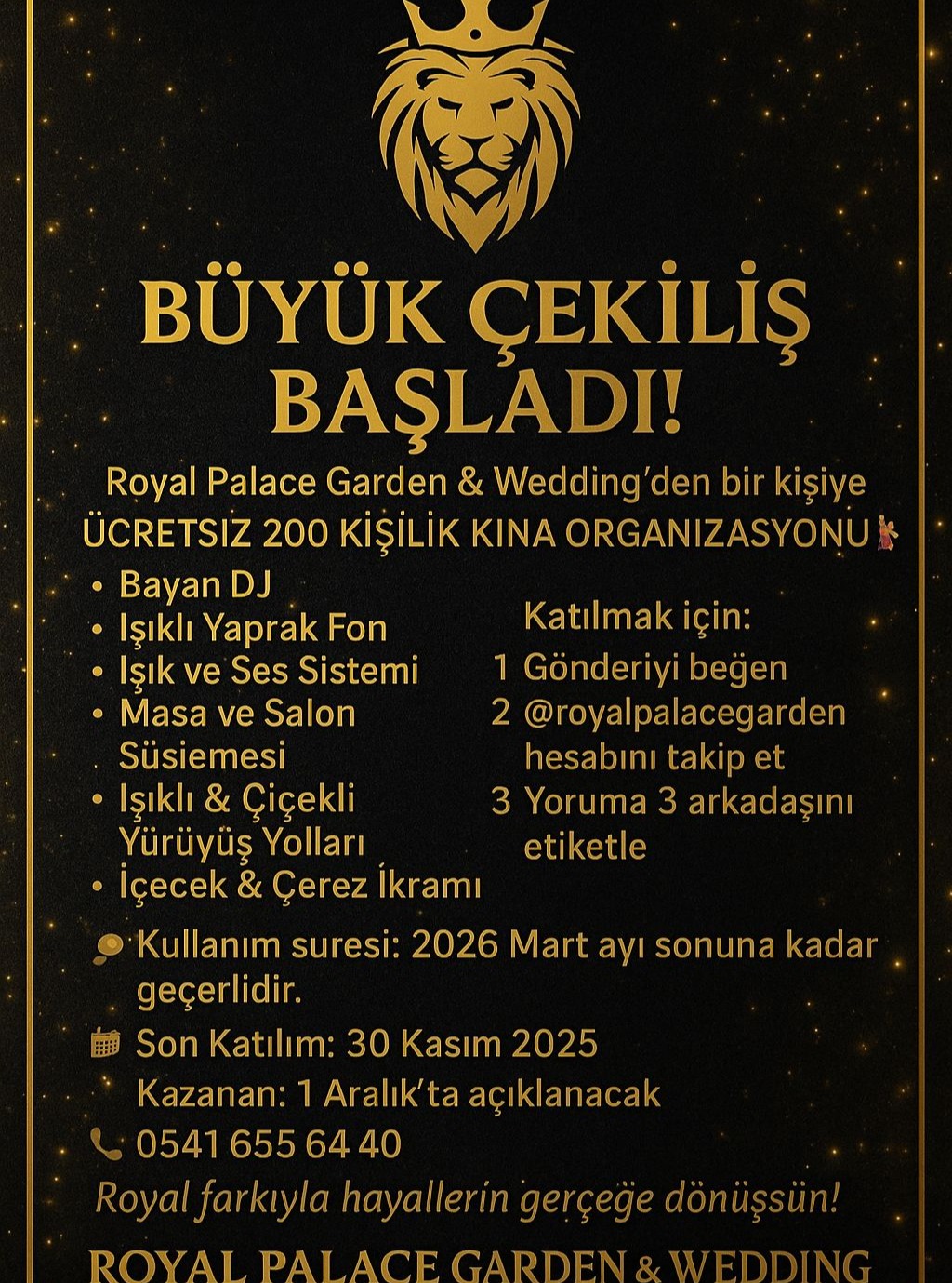 Royal Palace Garden & Wedding, katılım şartlarını sosyal medya kullanıcılarının rahatça yerine getirebileceği şekilde belirledi. Çekilişe katılmak için:
