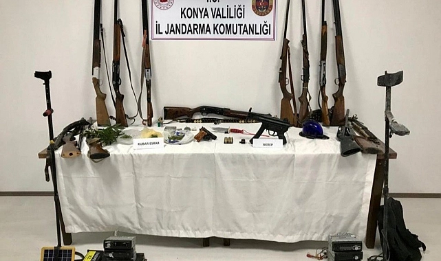 Konya'nın Beyşehir ilçesinde jandarmanın zehir taciri ve hırsızlık şüphelisi şahsın evine düzenlediği operasyonda çok sayıda silah ile parçaları ve çalıntı çeşitli malzeme ele geçirildi. Edinilen bilgiye göre, Konya İl Jandarma Komutanlığı ekipleri, Beyşehir ilçesi Doğanbey Mahallesinde yapılan istihbari çalışmalar neticesinde bir şahsın silah ve uyuşturucu madde kaçakçılığı yaptığı ve hırsızlık eşyalarını evinde sakladığı bilgisini aldı. Bunun üzerine ekipler şahsın evine operasyon düzenledi. Evde yapılan aramada 1 adet kısa namlulu otomatik silah ve şarjör, 9 adet otomatik av tüfeği, 5 adet silah parçası, 1 adet çakarlı tepe lambası, 1 adet kurusıkı tabanca, 31 adet kurusıkı tabanca mermisi, 2 adet tarihi eser aramada kullanılan dedektör, 1 adet kasatura, 40 gram kubar esrar, 1 adet kenevir, 10 gram kenevir tohumu, 7 adet çalıntı olduğu değerlendirilen araç teybi, 1 adet hacizli motosiklet ele geçirildi.