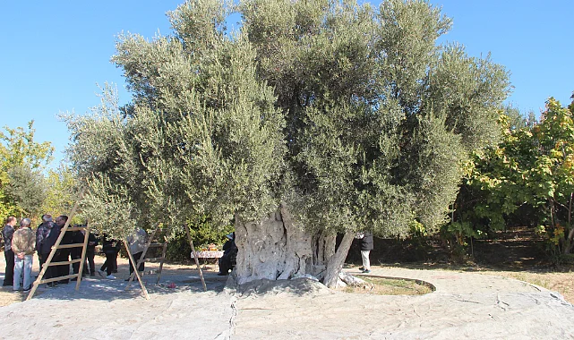 Konuşmaların ardında Mersin Valisi Ali Hamza Pehlivan ve etkinliğe katılanlar anıt ağaçtan zeytin hasadını gerçekleştirdi.