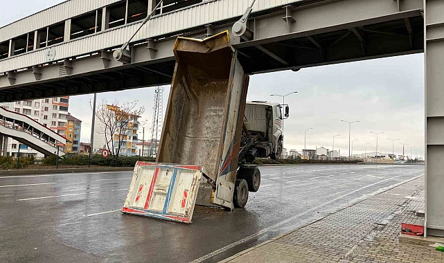 Niğde'de seyir halindeyken açılan kamyon dorsesi üst geçide çarptı.