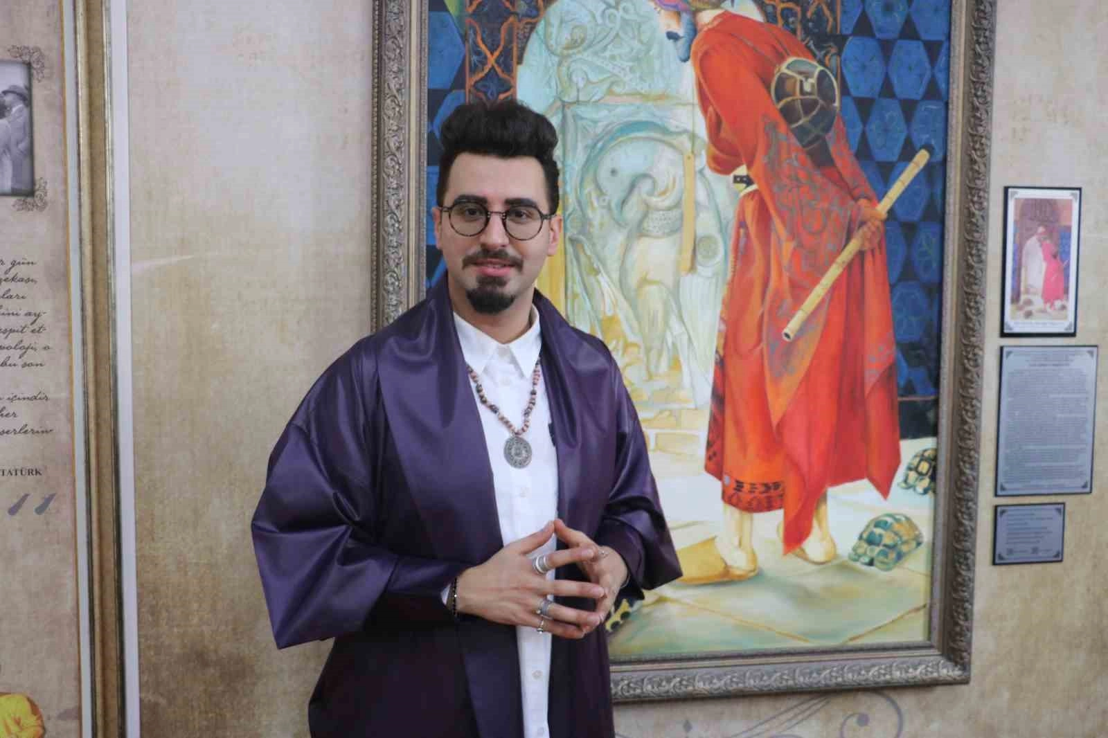 Güzel sanatlar fakültesinde yüksek lisans yapan ressam adayı Muhammet Hızır Yüksel, Osman Hamdi Bey'in en önemli eserinden bahsederek, "Samsun 19 Mayıs Üniversitesi'nde güzel sanatlar eğitiminde yüksek lisans yapıyorum. Yapmış olduğum tablo Osman Hamdi Bey'in ilahiyatçı eseri. Eserin aslında iki yapım aşaması var. Bunlardan birincisi çok daha büyük ebatlarda. Biz burada Caner Bey ile ikincisini çalıştık. Eser bana ait ama tamamen beraber diyalog içerisinde seçtiğimiz ve tercih ettiğimiz bir eser. Bu 1907'de yapılan eserin bire bir kopyası. Tam olarak ebatlar olarak, renkler olarak elimden geldiğince eserin orijinaline bağlı kalmaya çalıştım. Tek bir durum var farklı diyebileceğimiz. O da eserin içerisinde bulunan kitaplar ve yazılı bölümü. Eserin orijinaline baktığımızda tam olarak net bir şekilde görünmüyordu. O yüzden yazı birimlerini biraz değiştirdik. Onun dışında her şey bire bir. Eserin orijinaliyle aynı tuttuk. Samsun'da güzelce uzun bir süre çalıştım ve bugün Sivas'ta sergimizi açtık. Osman Hamdi Bey'in en önemli eserlerinden birisi, akla ilk başta Kaplumbağa Terbiyecisi geliyor. Ama birçok kesimin bilmediği taraflar da var. İlahiyatçı da en önemli eserlerinden birisi" ifadelerini kullandı.