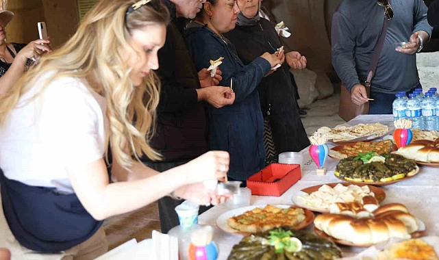 21-27 Mayıs tarihleri arasında kutlanan Türk Mutfağı Haftası'nın son gününde, Kapadokya bölgesini gezmeye gelen turistlere yöresel ürünler ikram edildi.