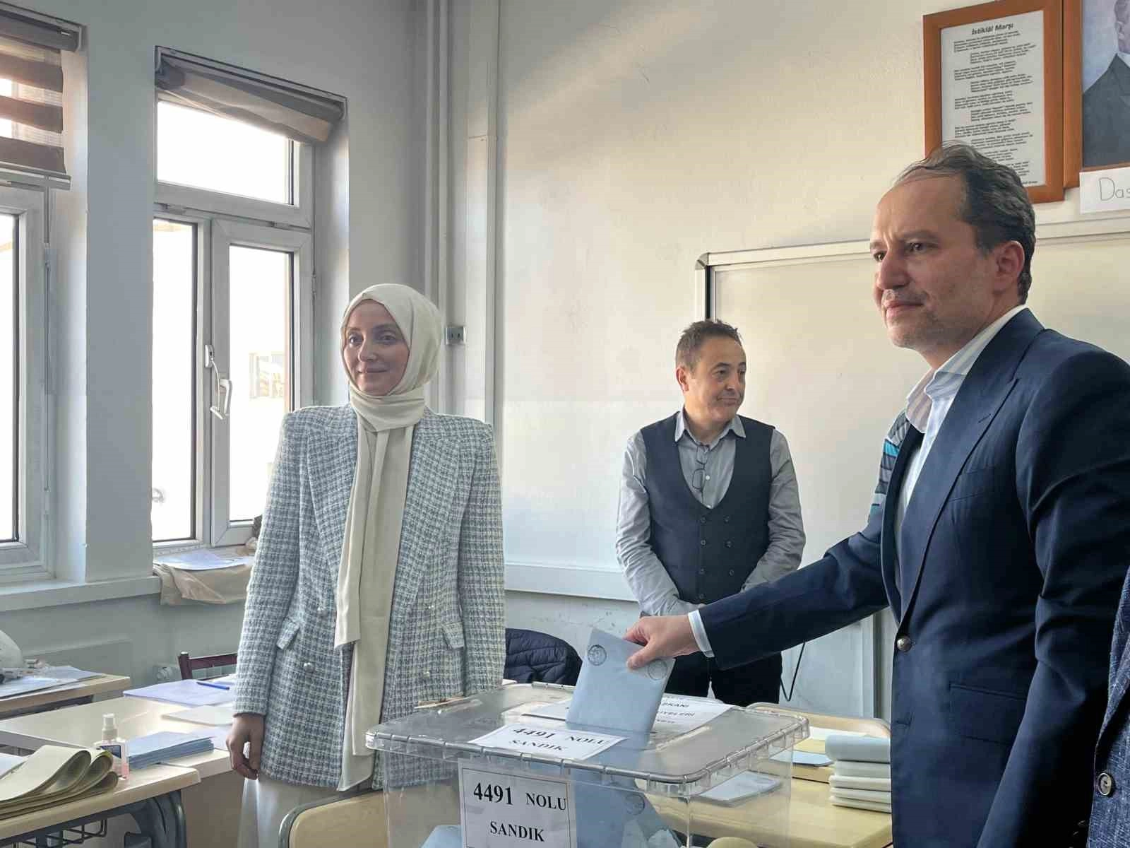 Yeniden Refah Partisi Genel Başkanı Fatih Erbakan, 31 Mart Mahalli İdareler Genel Seçimi için oy vermek üzere Çankaya ilçesinde bulunan Rıdvan Binnaz Ege Anadolu Lisesi'ne geldi. Erbakan oy kullanmaya eşi Beyza Mollu Erbakan'la birlikte geldi. Eşiyle birlikte oy kullanan Erbakan, ardından basın mensuplarına açıklamalarda bulundu. Çok yoğun bir seçim kampanyası tamamladıklarını belirten Erbakan, "Biz de vatandaşlık görevimizi eşimle birlikte yerine getirdik. Milli iradenin tecellisi için bu görevi ifa etmiş olduk. Bu seçim günün barış içerisinde tamamlanması temenni ediyoruz. Sandıklar açıldığında çıkacak sonucun da ülkemiz ve milletimiz için hayırlara vesile olmasını diliyorum" dedi.